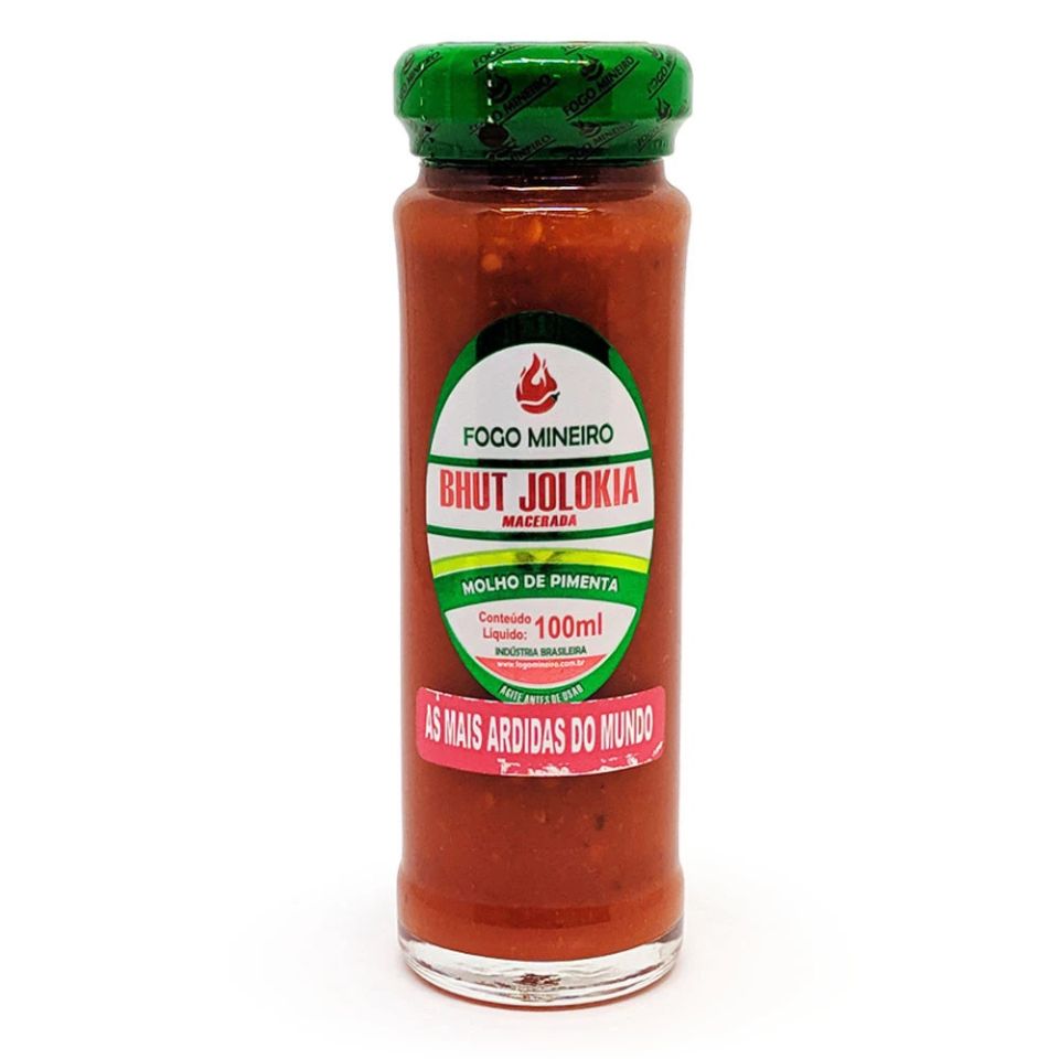 Este molho traz a intensidade da famosa Bhut Jolokia (conhecida como Pimenta Fantasma), reconhecida mundialmente por sua pungência elevada. Produzido pela Fogo Mineiro na versão macerada, ele mantém a consistência da polpa da pimenta, garantindo sabor e ardência concentrados. O frasco de 100ml exibe o selo “As mais ardidas do mundo”, sendo ideal para quem busca elevar o nível de picância de suas refeições.